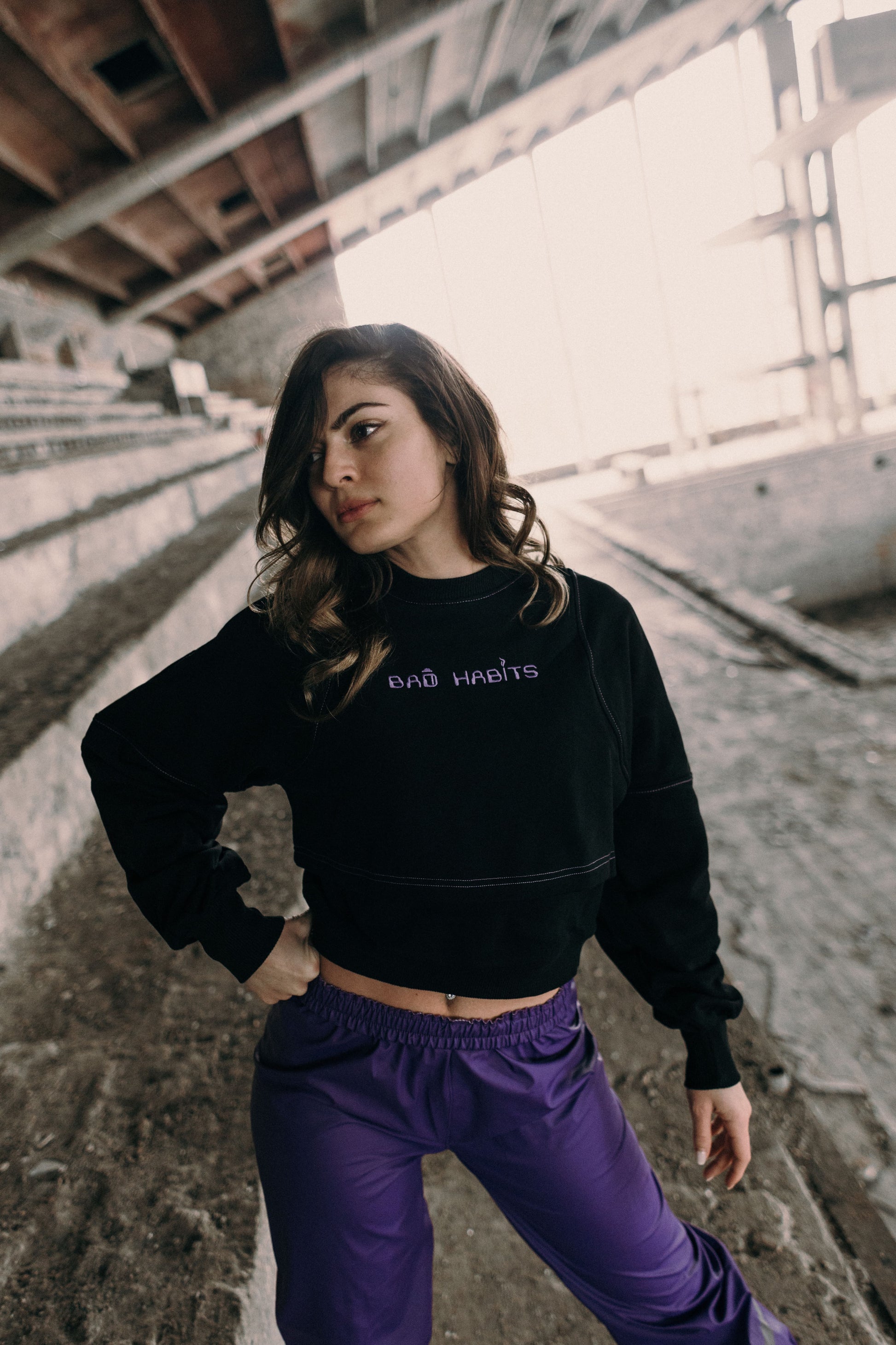 Топъл и удобен суитшърт Bad Habits – изработен от 100% памук, той ще бъде твоят верен спътник в студените дни и парти уикендите.
